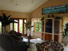 Imagine a vacation where you wake up in your very own exotic paradise. You're surrounded by warm breezes, tropical forests teeming with wildlife, pristine beaches, clear blue skies, high mountain rain forest, and tropical sun. Two bedrooms with king size beds leading to the balcony overlooking breath taking views of the Pacific. By the private pool you can sun bathe or sit under the Tiki Hut and grill the fresh catch of the day as you sip on a cold beverage. When the sun goes down, the fiber optic lighting system throughout the landscape and around the pool will lure you to enjoy the night air. Average temperature is 70 at night, 88 in the day. Grounds include avocado, mango, papaya, and citrus trees with many tropical flowers for the humming birds. Howler monkeys, iguanas, and parrots frequent the area, as well as many other species of birds and animals. The house is comfortable with a well-equipped kitchen, large dining room, private pool overlooking the ocean, gas barbecue grill, a wonderful maid and overall, beautiful surroundings. It has all the conveniences of home, ice makers, washer and dryer, dishwasher, central A/C and more. Optional amenities include a local chef and full catering.